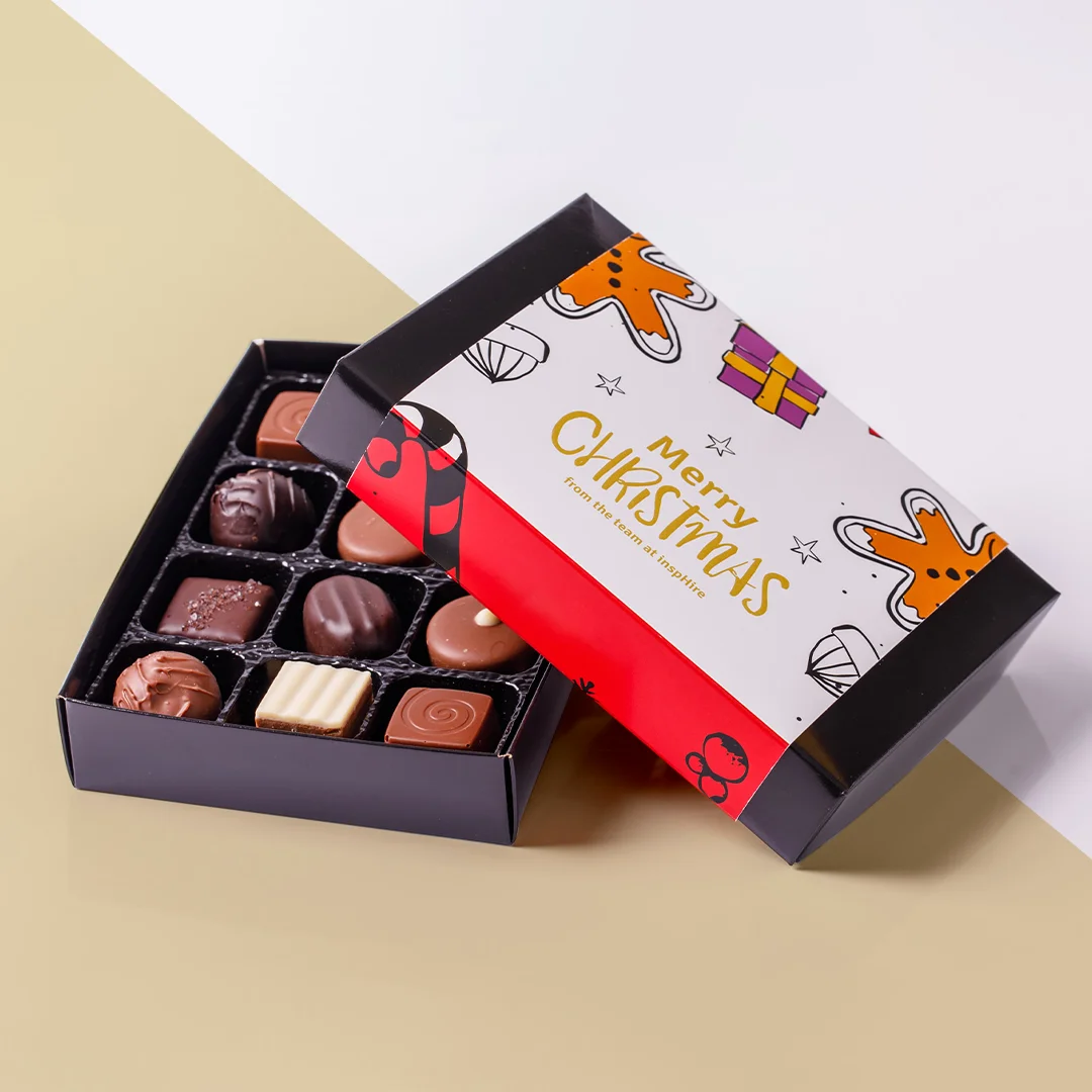 Make your chocolates impossible to resist by presenting them in our well-crafted and personalised Christmas chocolate boxes. Our Chocolate Boxes combine sturdy construction, vibrant seasonal artwork, and luxurious finishing options to help your brand stand out on shelves—and in gift baskets.