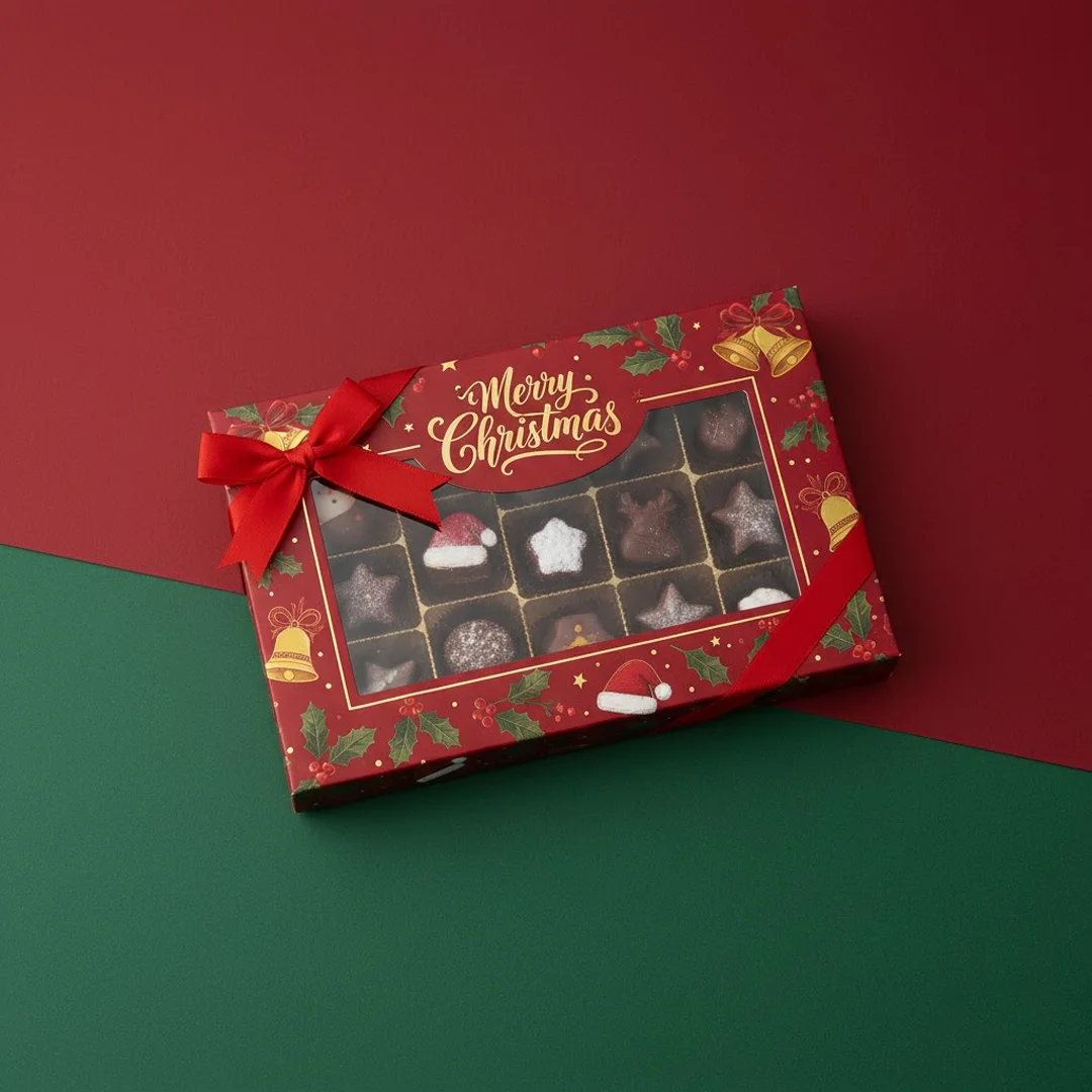 Festive Printed Box Seasonal retail chocolates and gift packs.