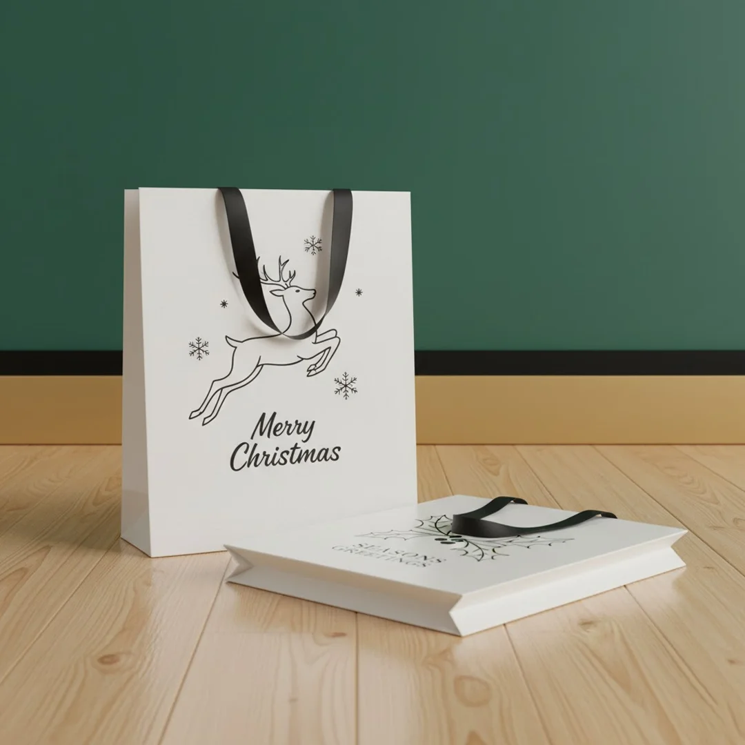 Luxury red-gold with foil; Eco kraft with green print; Minimal white-silver with Spot UV; Playful multicolor with Santa or reindeer prints. |