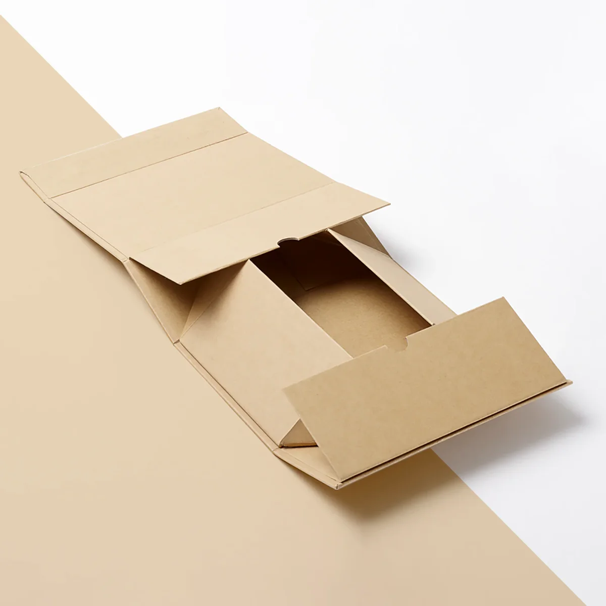 A Collapsible Rigid Box is shipped flat, unassembled. This is a smart way to save space and shipping volume. They usually use foldable panels with pre-fixed corners and can include magnets, ribbon pulls, or locking tabs for quick setup.