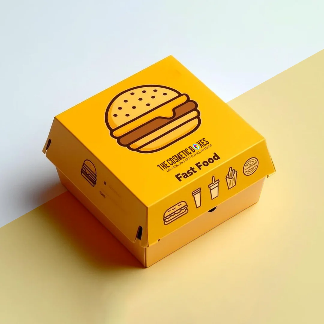 Furthermore, you can also have our special coatings: matte, gloss, spot UV, foil, silicon, wax, and PLA. These coatings amplify the aesthetic functionality of your Corrugated Burger Boxes. With every stroke, you get to enhance the textural appeal as well as add another layer of protection against moisture and print fade. Similarly, you can also use our special add-ons like handles, separators, windows, and much more. You name it, we deliver it, exclusively at TheCosmeticBoxesUK.