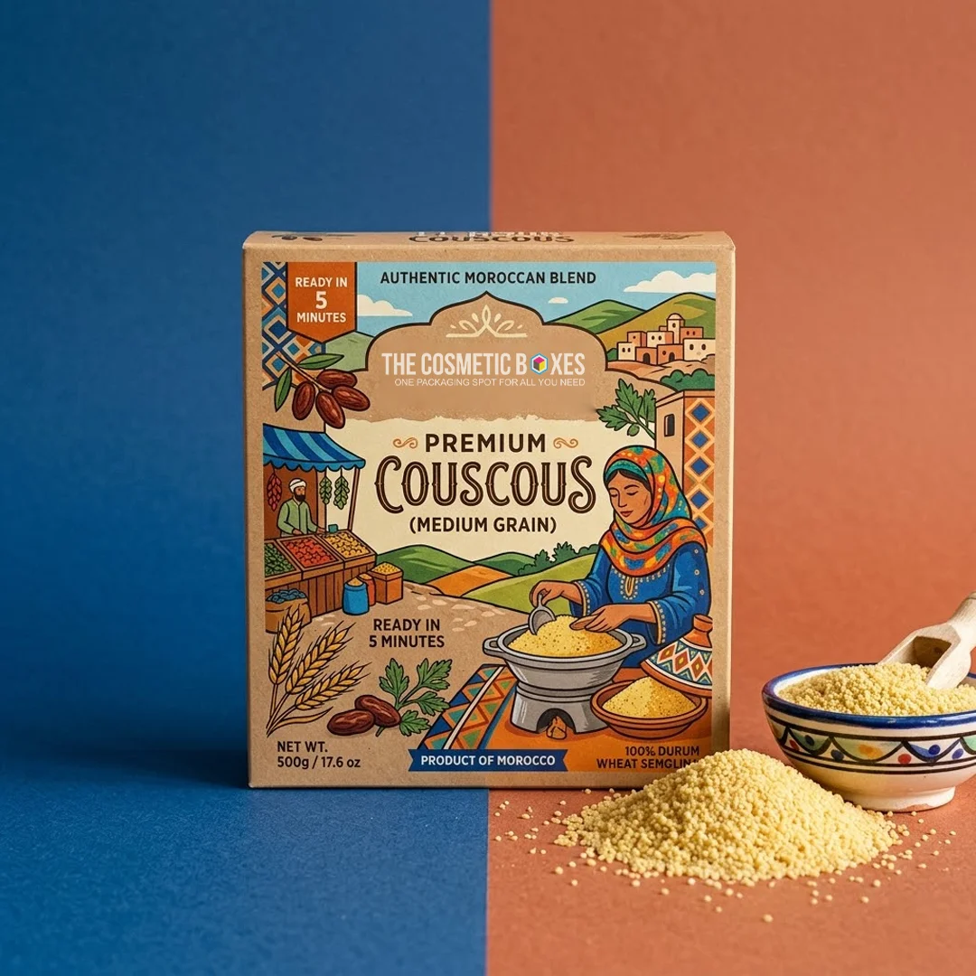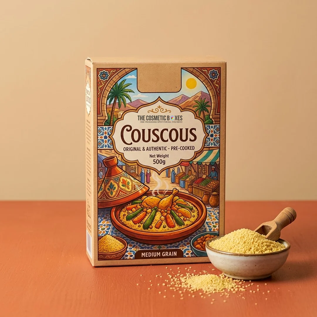 Food packaging is a matter of delicacy. Therefore, you need the alliance of the best. At TheCosmeticBoxesUK, we provide you with the best materials for your couscous packaging because your food items need the packaging that keeps them fresh while presenting them in a clean and appealing way on shelves.