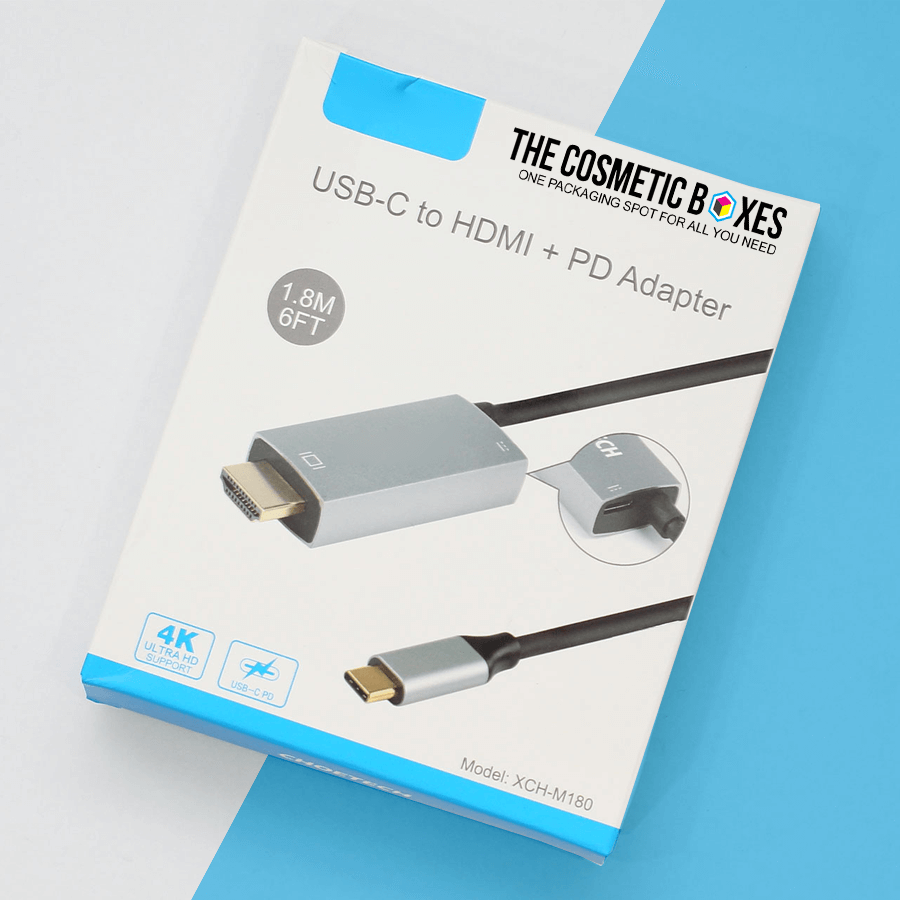 See The Cosmetic Boxes’ HDMI Cable Packaging and give your electronics the packaging they deserve. Our packaging has been designed to protect your cables, durability and aesthetics while adding value by portraying your brand. We supply your packaging for retail or wholesale with solutions and safeguards for product safety and professional presentation.