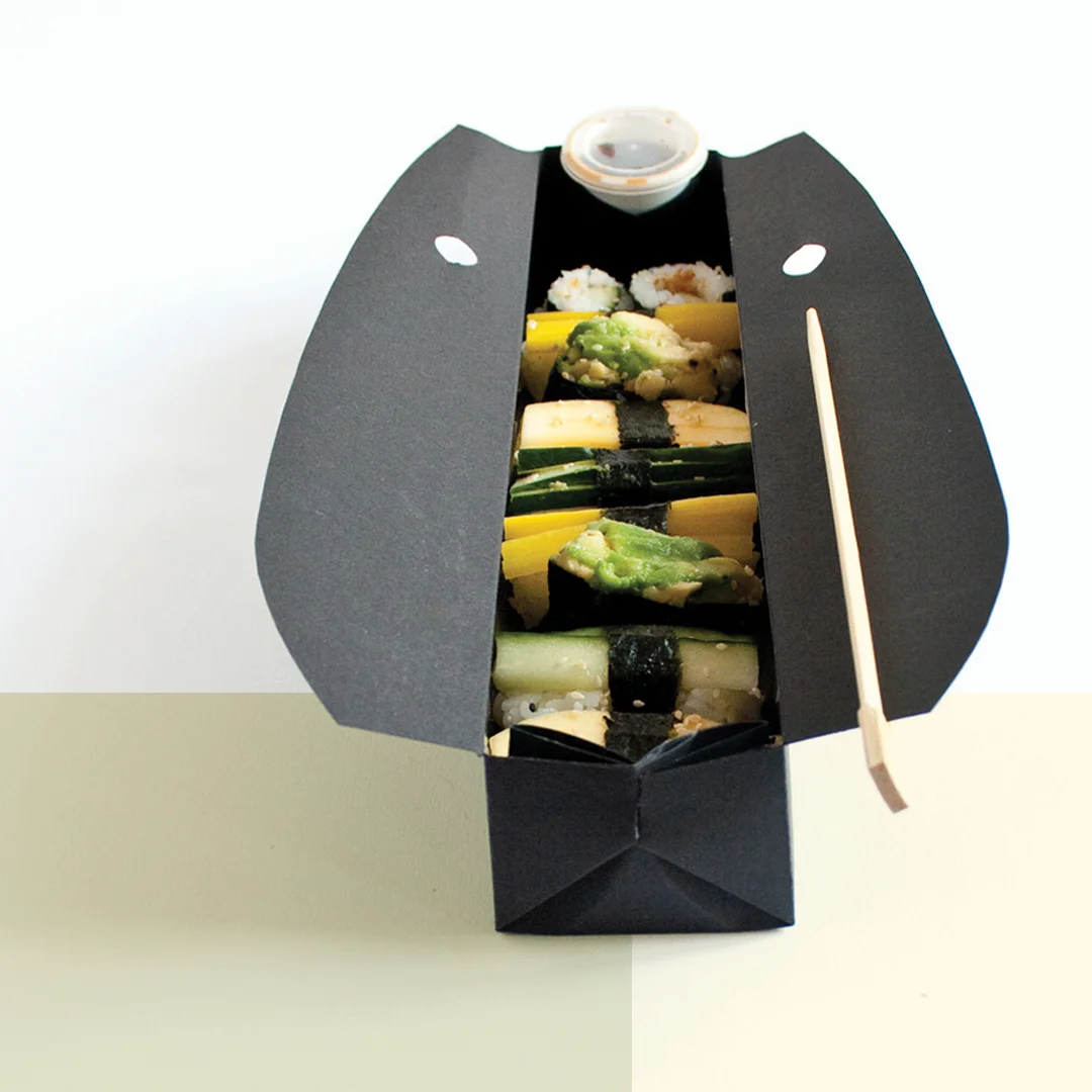 These are simple and functional, as their purpose is to encase various kinds of sushi securely.