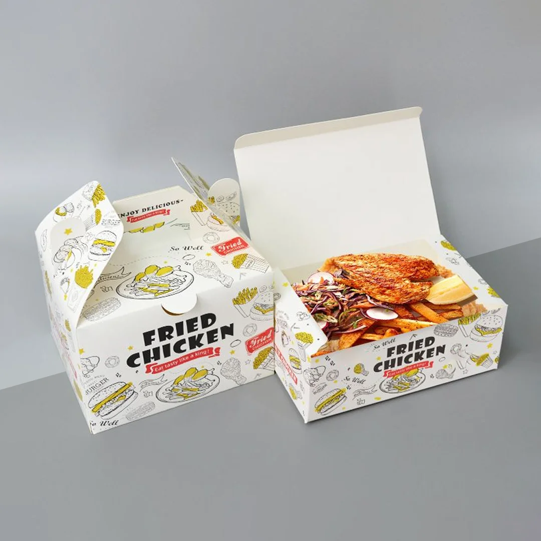 Moreover, the cardboard Takeaway Food Packaging Boxes are also made up of natural elements, recyclable and reliable. They are light but thicker than Kraft boxes, best known for their white and smooth texture—the best canvases for high-quality prints and designs.
